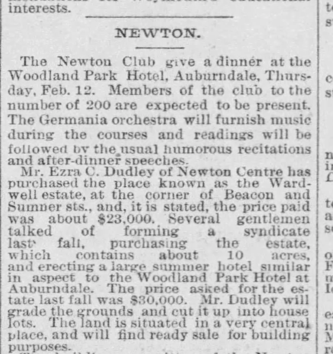 1891 Dudley Purchases Wardwell Estate