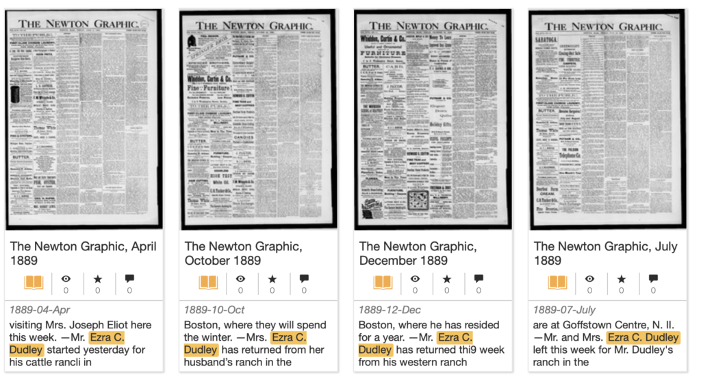 • 1887 Feb Ezra Dudley in town